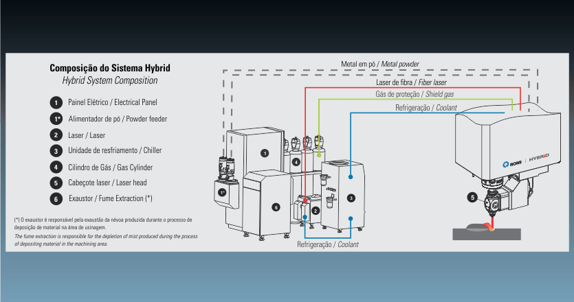Os centros de maquinação da Linha ROMI D hybrid combinam operações de maquinação e manufatura aditiva (impressão 3D metálica) num único equipamento. Os materiais podem ser adicionados na quantidade exata para atingir o perfil desejado, e posteriormente maquinação. Permite economizar no uso de materiais de custo elevado. Apresenta uma baixa transmissão de temperatura para a peça, evitando-se possíveis trincas.