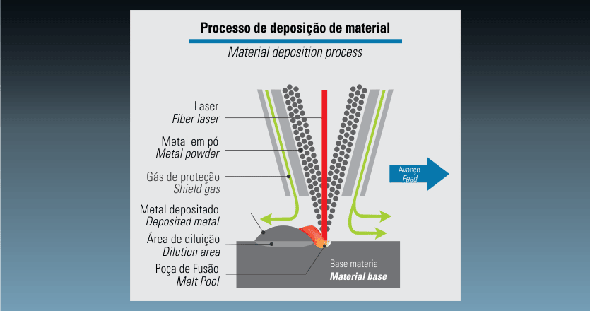 Realiza operações de gravação e texturização. É possível adicionar materiais de maior resistência em determinadas regiões da peça onde ocorre maior desgaste, como no caso das ferramentas de estampagem.
