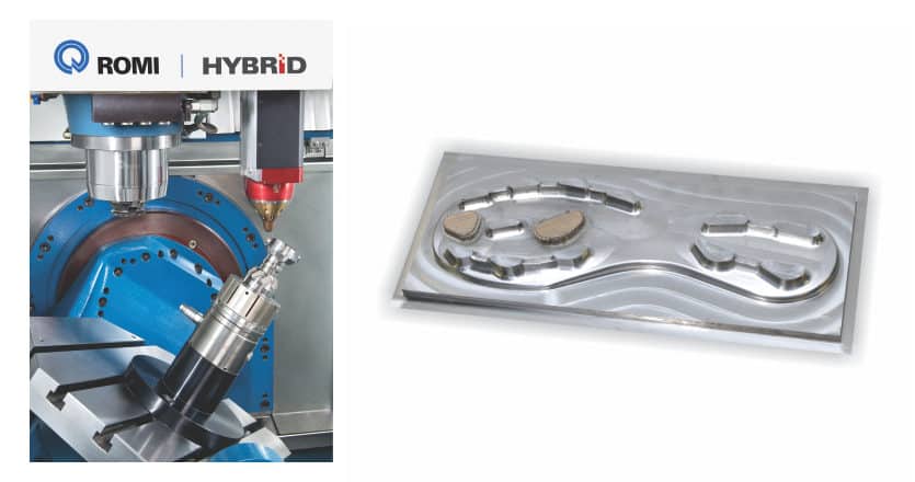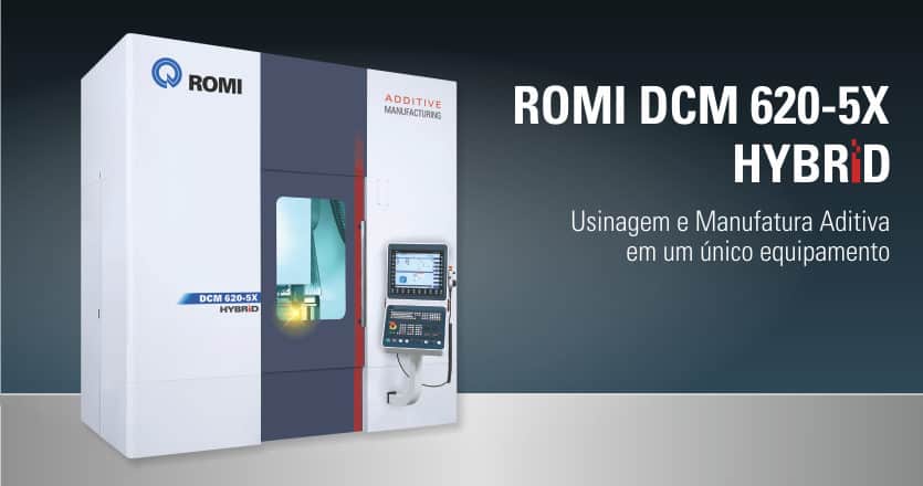 O centro de maquinação vertical 5 eixos ROMI DCM 620-5X hybrid combina as operações de maquinação e manufatura aditiva (impressão 3D metálica), permitindo a adição de diversos materiais em perfis complexos. Materiais como inconel e aço inox podem ser adicionados na quantidade exata para atingir o perfil desejado, e posteriormente maquinados, obtendo-se grande economia no uso destes materiais de custo elevado.